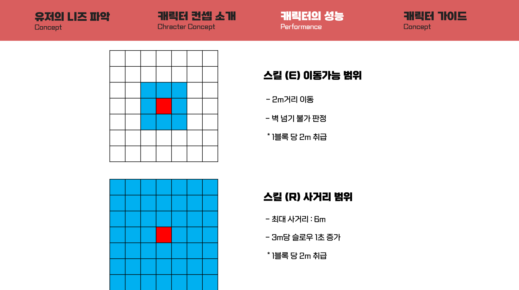 하지만 기획하는 캐릭터는 이러한 근거리 캐릭터들과 달리, 높은 난이도와 숙련도를 요구하는 전략적 플레이를 강조합니다.